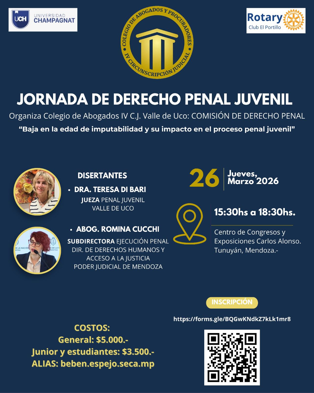 Una instancia para analizar los desafíos actuales del sistema penal juvenil junto a especialistas en la materia. Organizada por la Comisión de Derecho Penal de la IV Circunscripción Judicial Valle de Uco.